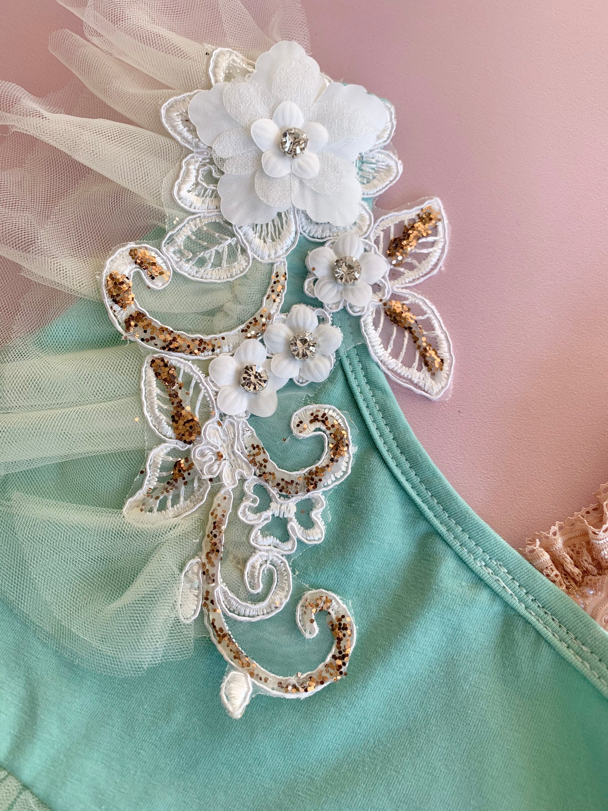 It also has some cute lace detail at the thigh area and gorgeous diamanté flowers at the shoulder. Definitely a winner!