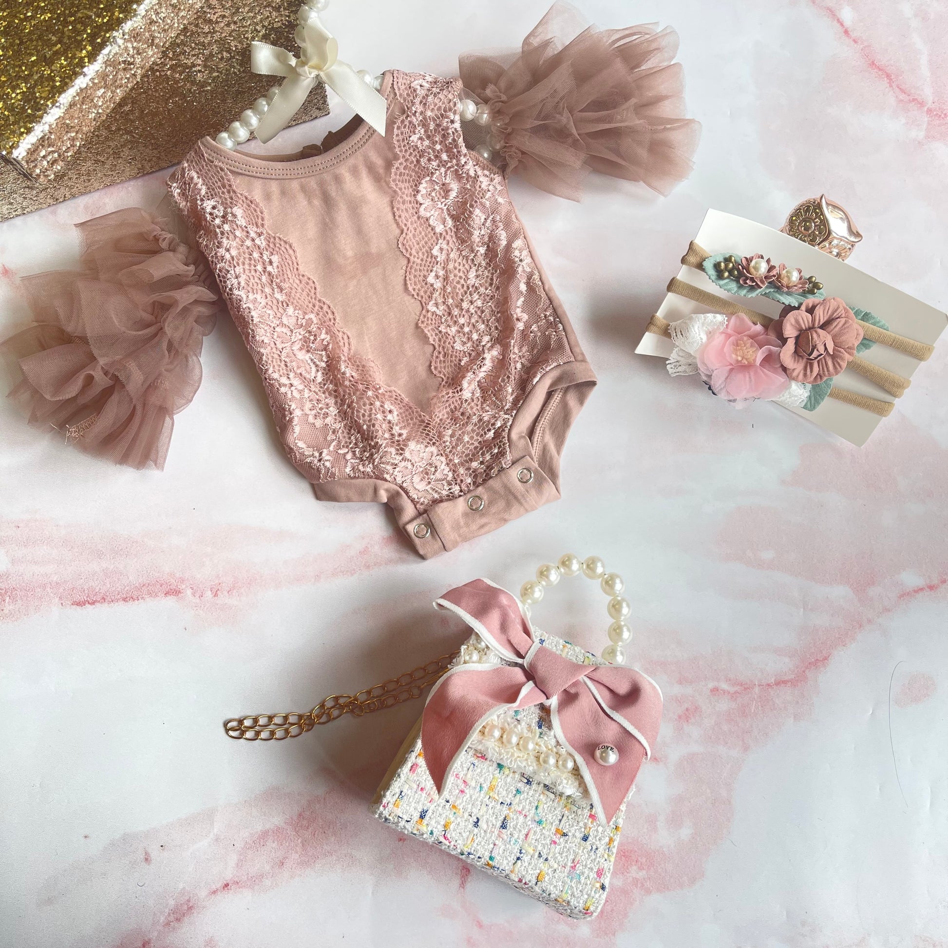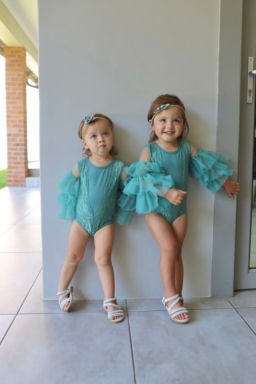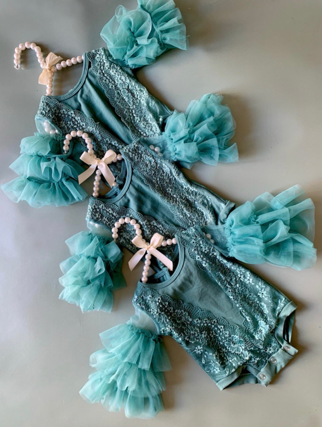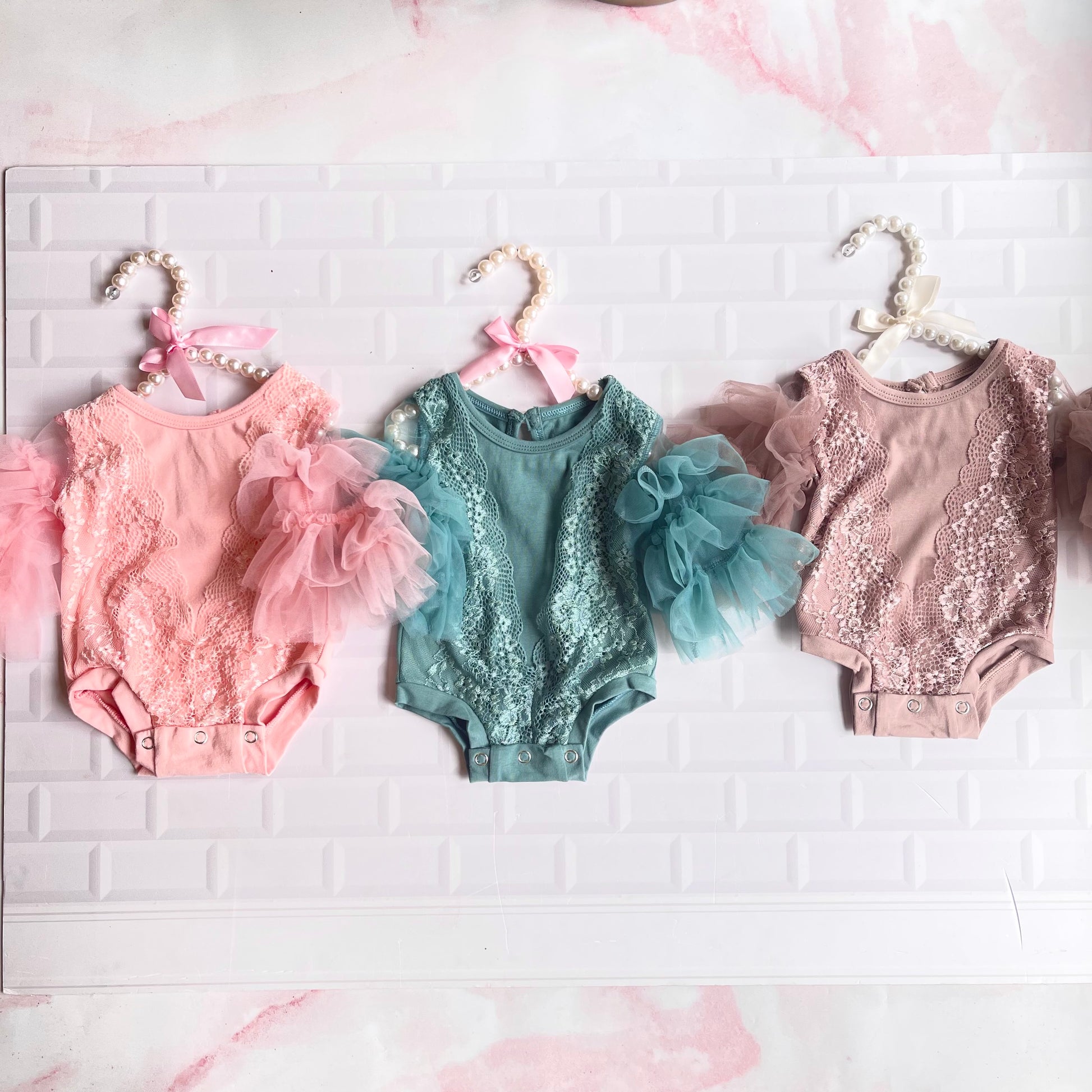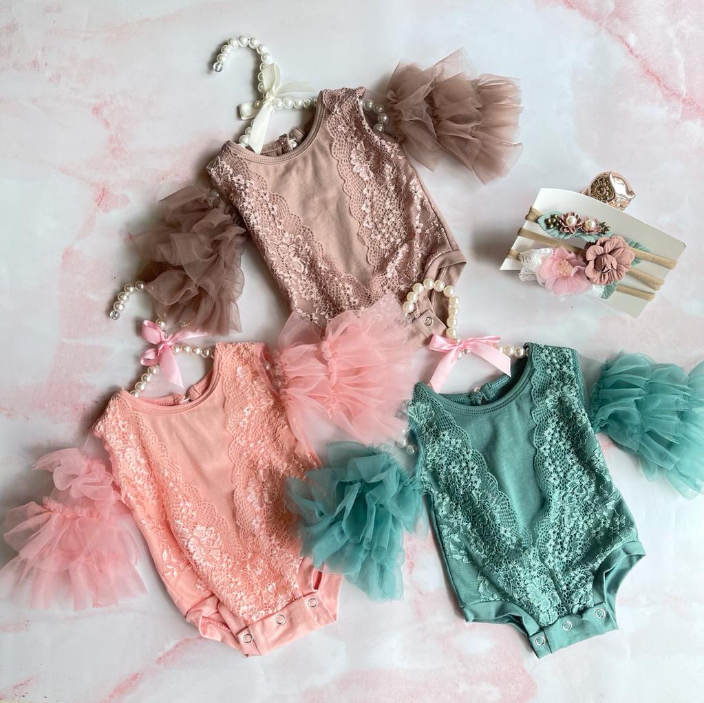Our Cassandra romper is a real show stopper. With its dramatic tulle sleeves and lovely lace detail, this outfit is sure to make your little girl feel special.