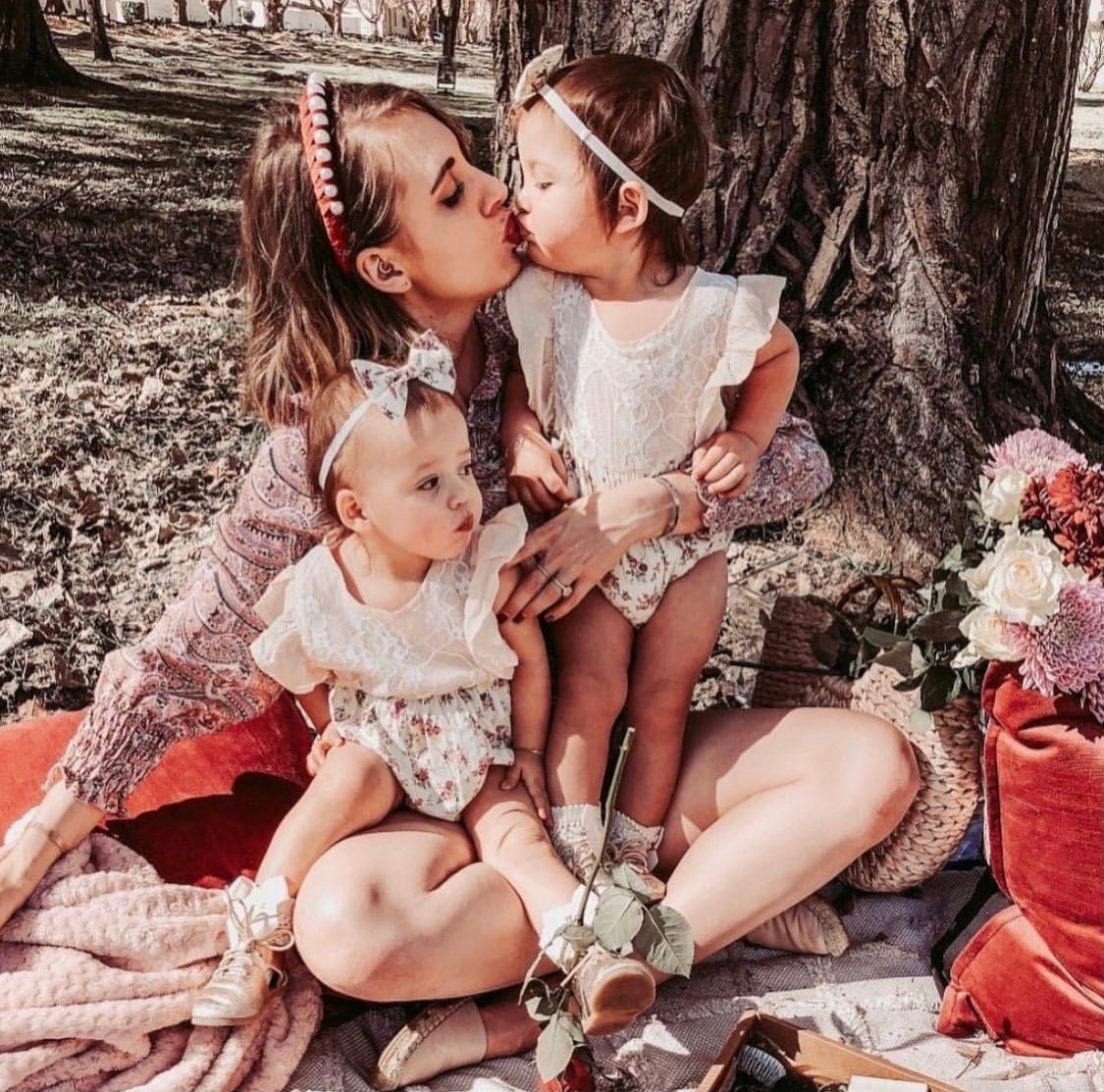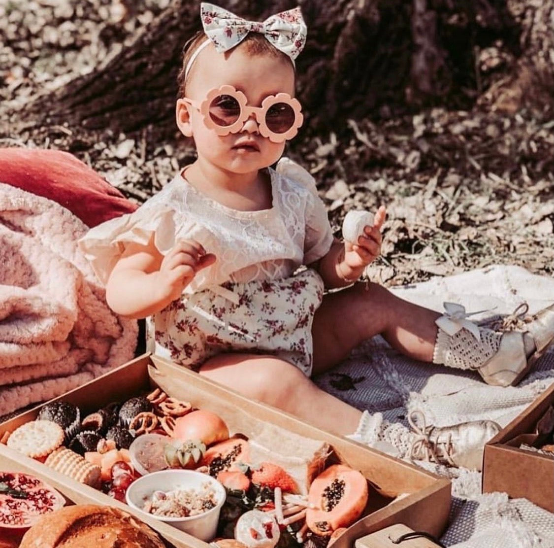 Cream fabric, lace and florals make up this super cute romper. It has a lovely floral print and comes with a matching headband.
